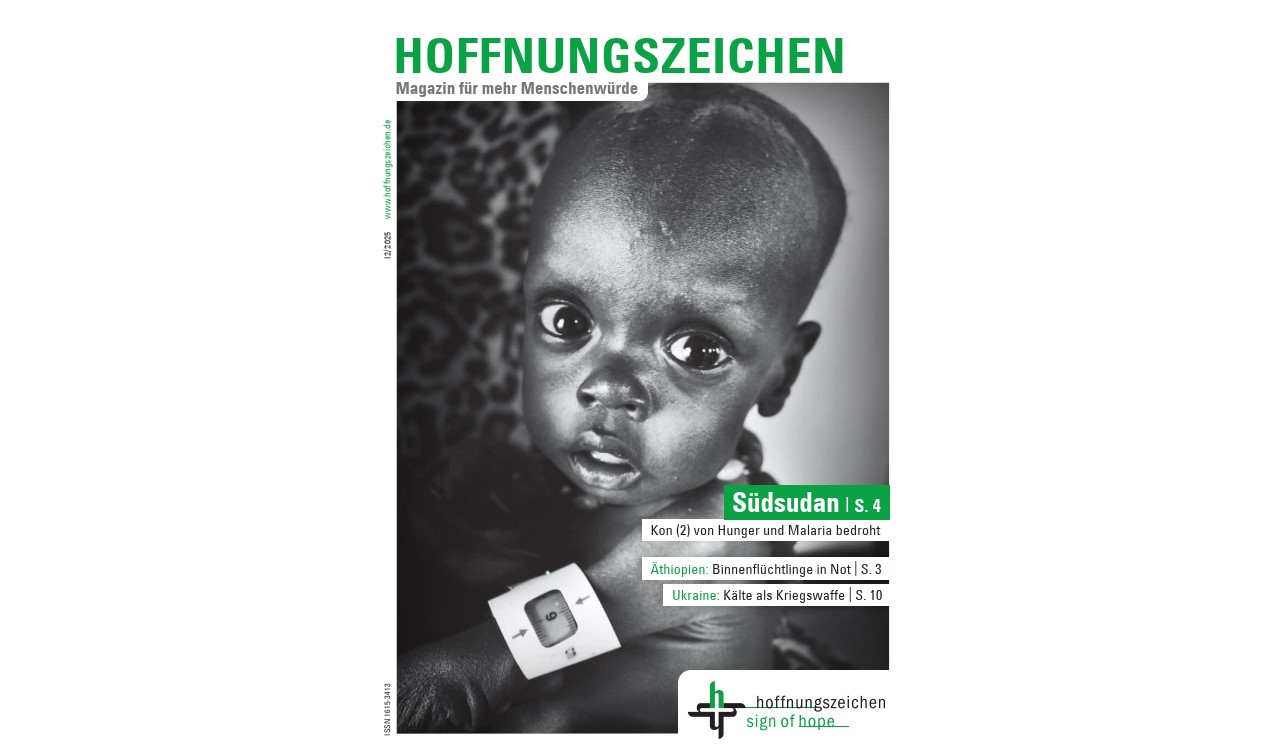 In unserem monatlich erscheinenden Magazin finden Sie Berichte unserer Mitarbeitenden von den Projekten vor Ort, aktuelle Menschenrechtsthemen, Gebetsanliegen für jeden Tag und anstehende Aktionen von Hoffnungszeichen. Gerne können Sie das Magazin auch unverbindlich und kostenlos per Post erhalten. Eine kurze Nachricht an info@hoffnungszeichen.de genügt.
